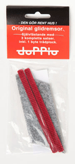 Glidremsor finns utstansade på en självfästande tejp med skyddsfilm och därmed enkel att byta.