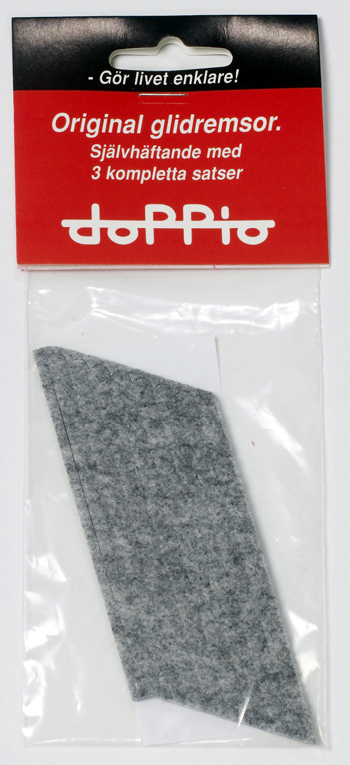 Doppio röda plyschremsor "trådplock" och glidremsor / glidytor. Förpackningen innehåller 3st långa och 12 korta grå glidremsor plus 2st röda trådplocksremsor.